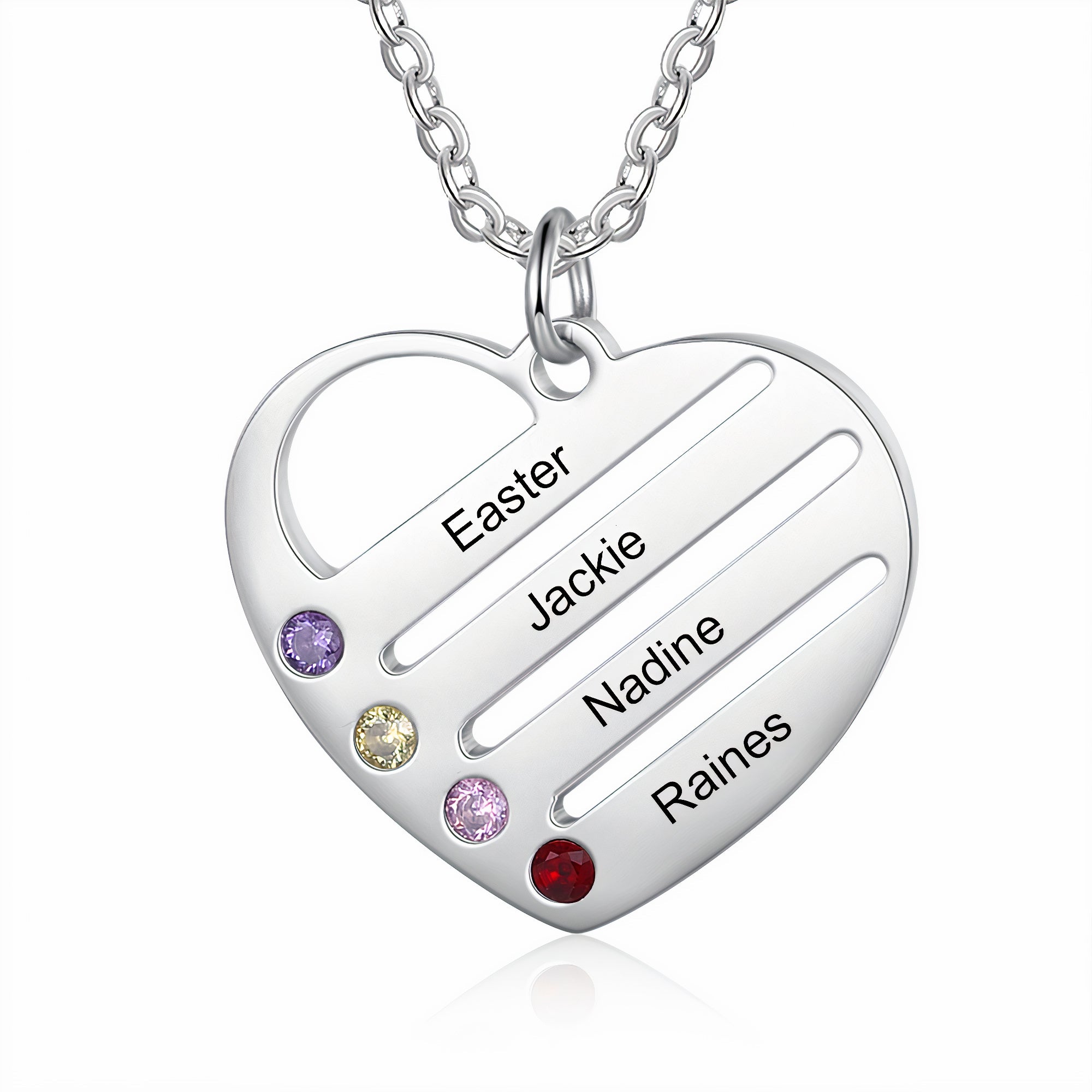 Celebrate the special bond of family with our Multiple Birthstones Heart Necklace for Mom. This elegant silver necklace can be personalized with 1-4 names and matching birthstones, making it a meaningful gift that keeps loved ones close. The adjustable chain ensures a perfect fit, combining practicality with beauty.
