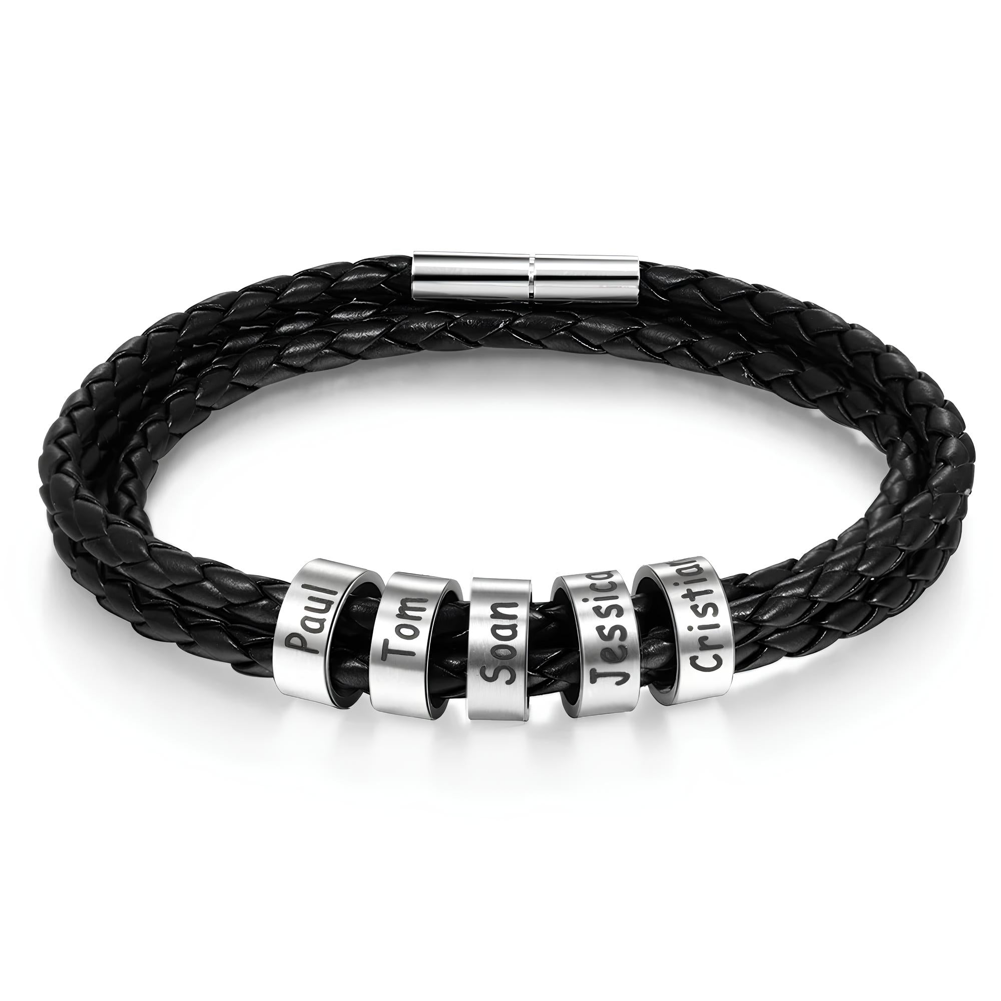 Elevate his style with our Braided Bracelet for Men with Charms, a personalized accessory that combines a sleek black cord with up to 10 engraved silver charms. This bracelet is perfect for celebrating family or special memories, making it a meaningful gift for fathers, husbands, or boyfriends. With an expandable design, you can add more charms in the future, ensuring this bracelet grows alongside your most cherished moments.