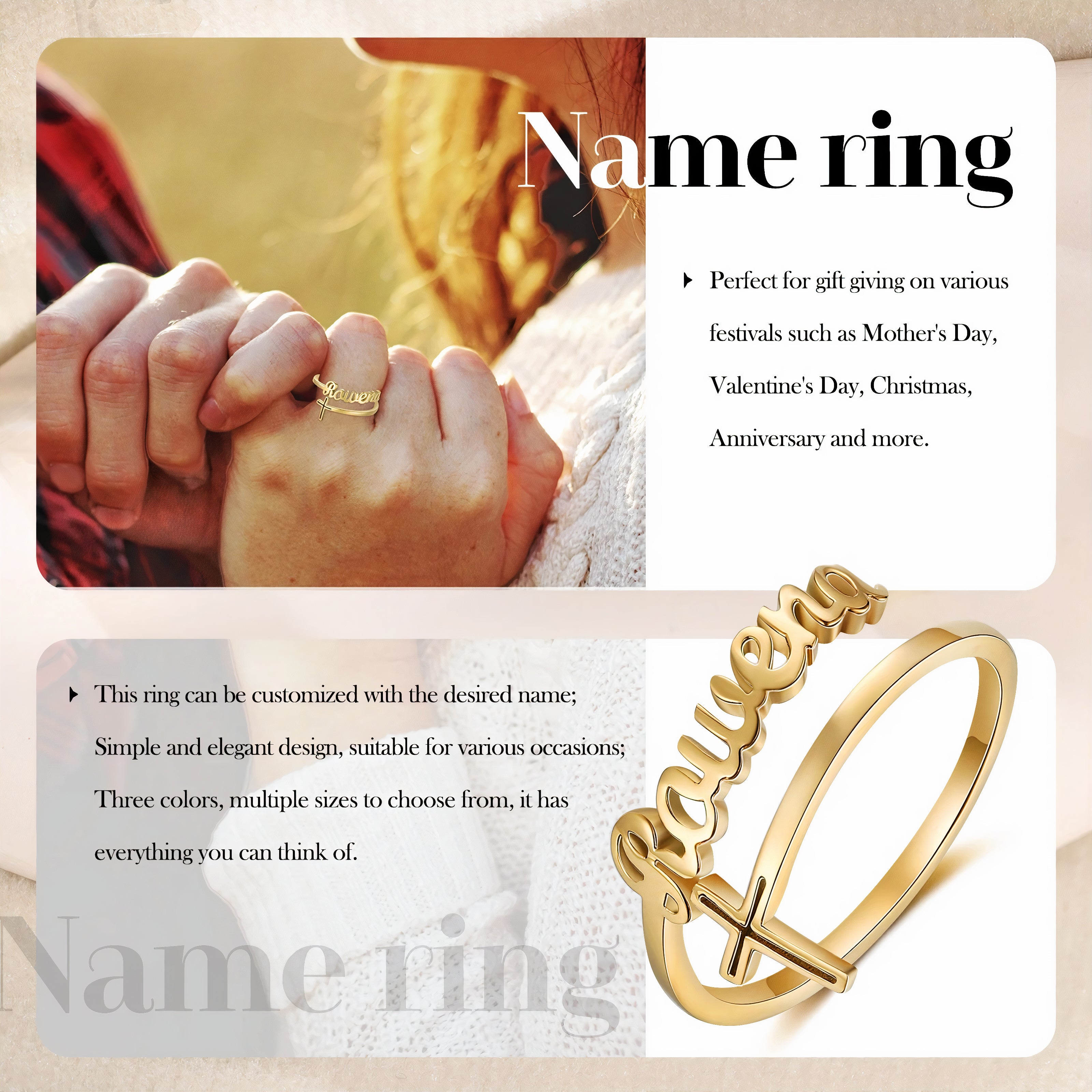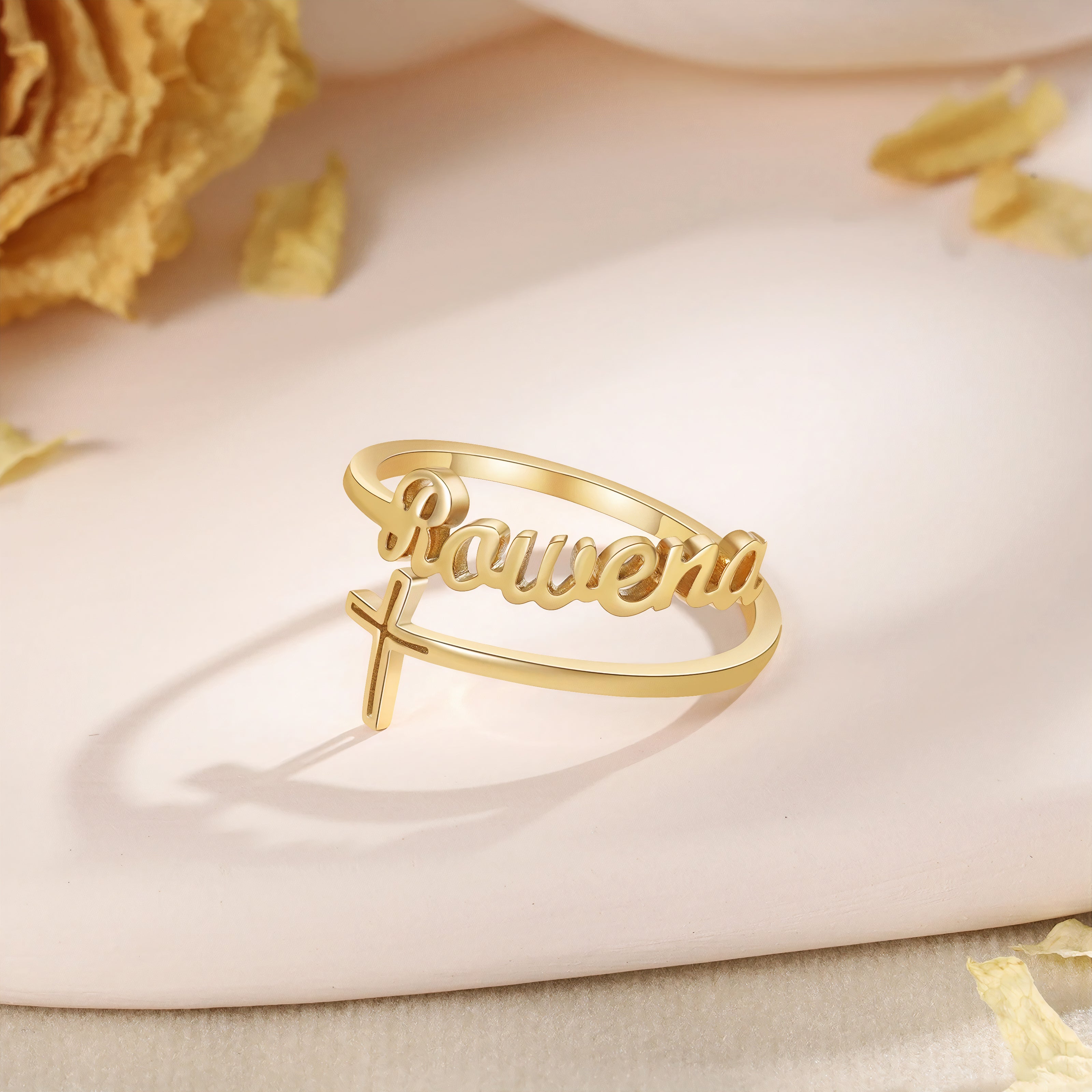 Simple, meaningful, and made just for you — our Cross Name Ring is a beautiful way to carry a special name close every day. Crafted in your choice of silver, gold, or rose gold, this ring features a sleek cross design paired with one personalized name. It’s available in sizes 5 to 12, offering a comfortable fit and a timeless look you'll love.