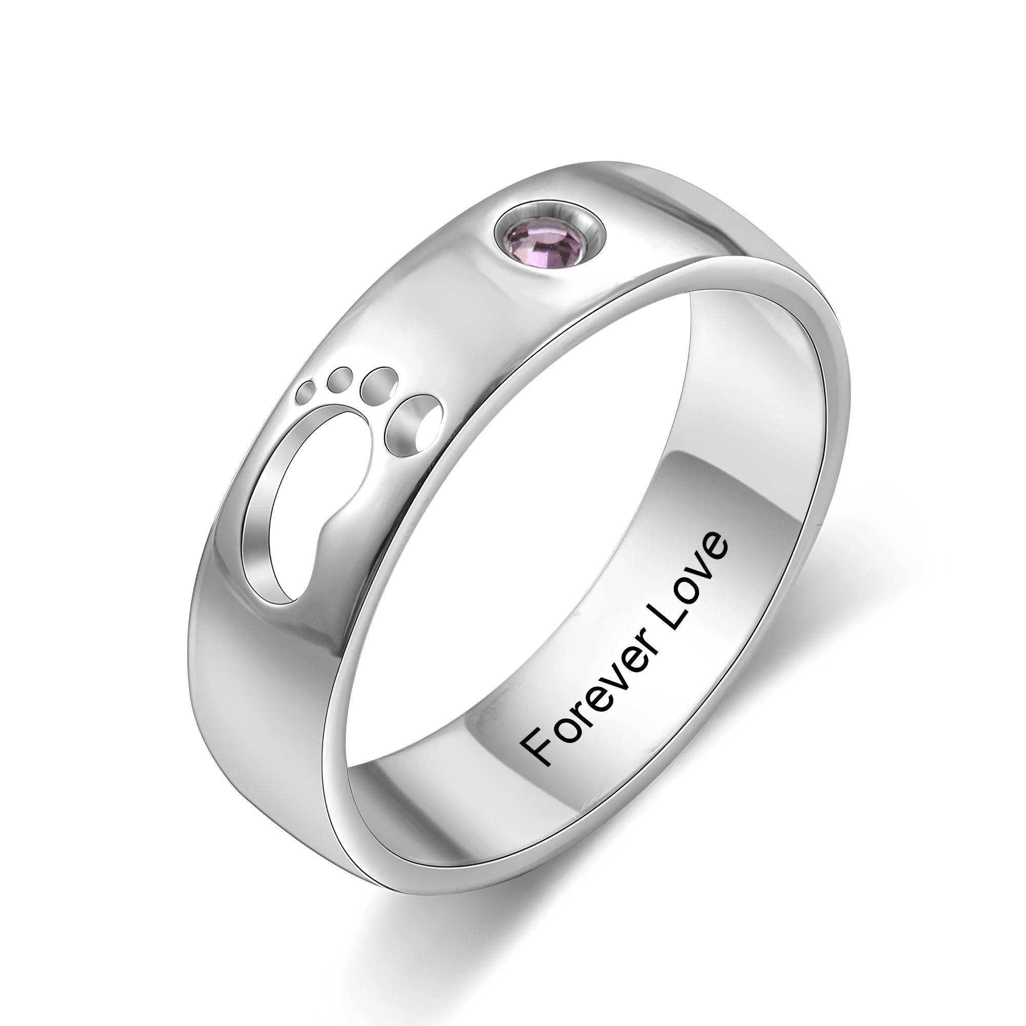 Capture the moment forever with our Custom Baby Footprint Birthstone Ring. This sentimental piece features delicate baby feet paired with a sparkling CZ birthstone, and a personalized name engraving inside the band. Made in radiant silver with rhodium plating, it’s the perfect keepsake for celebrating a new arrival.