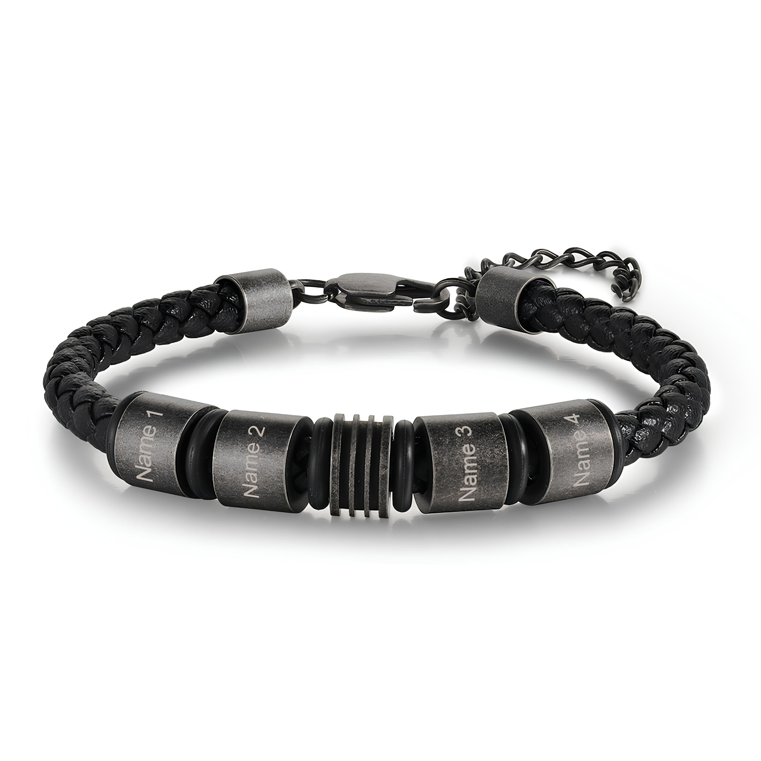 This personalized braided leather bracelet is more than just an accessory—it's a daily reminder of the people who matter most. Featuring 2 to 5 custom-engraved name beads, this meaningful piece is designed for anyone who appreciates rugged style and personal connection.