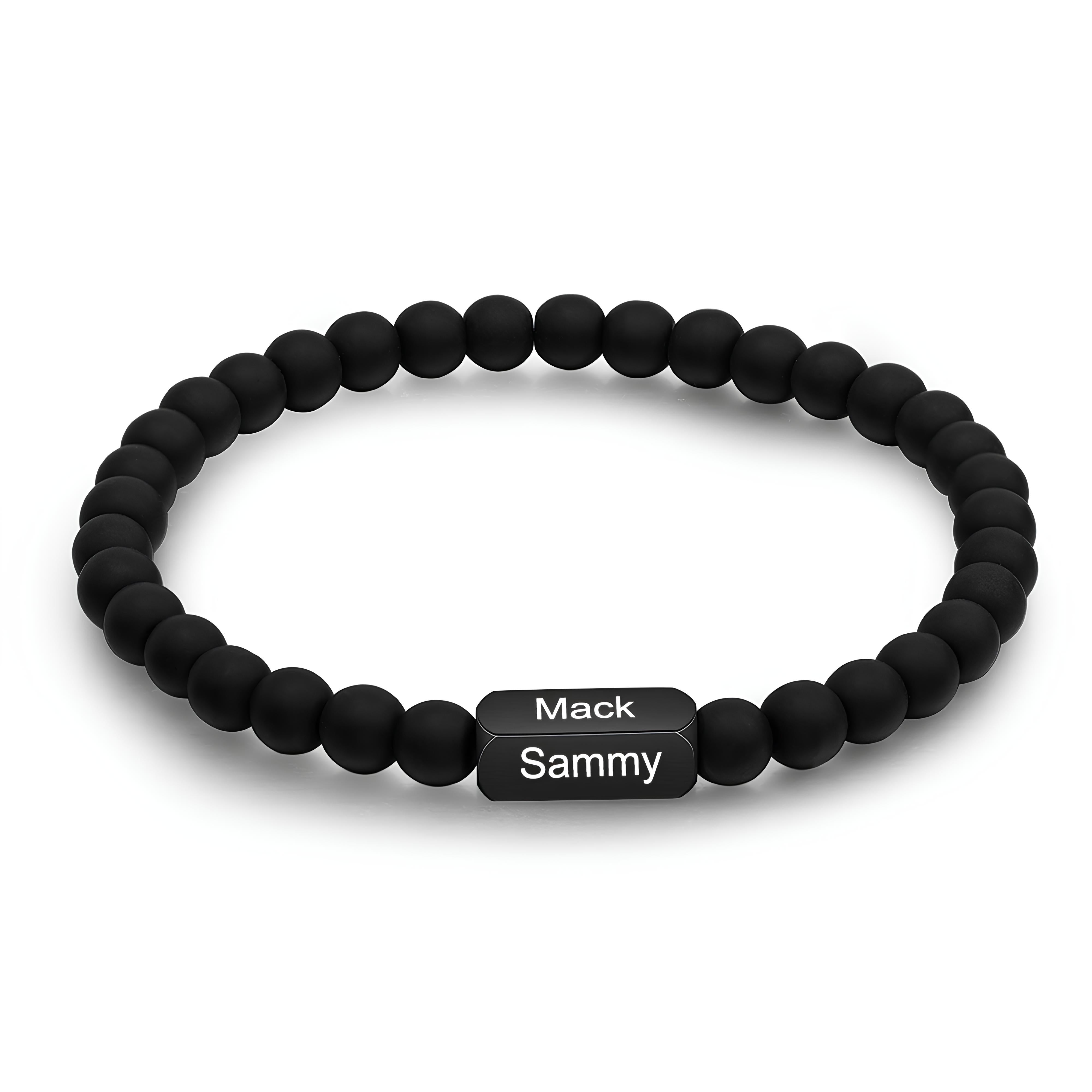 Discover the perfect blend of style and meaning with our Custom Onyx Bracelet. Featuring elegant black onyx beads and personalized engraving for 1-4 names, this bracelet is a timeless accessory for any man. The 8.5-inch stretchable design ensures a comfortable fit, making it ideal for daily wear or as a thoughtful gift.