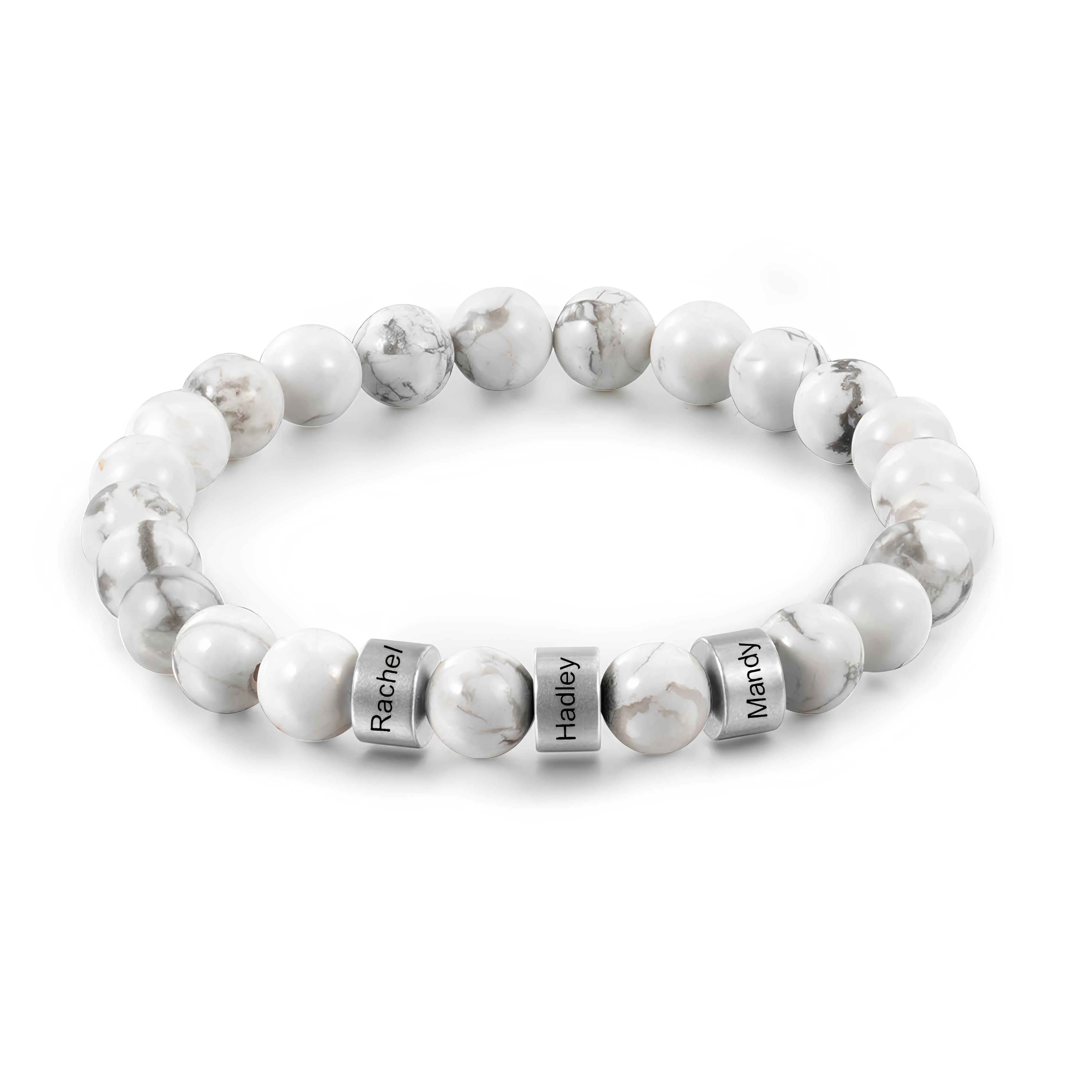 Celebrate meaningful moments with our White Bead Bracelet, which can be personalized with 1-4 engraved names. This versatile bracelet features elegant white beads and offers an adjustable design for a comfortable fit. It’s perfect for both men and women, making it a great way to honor loved ones or special memories.