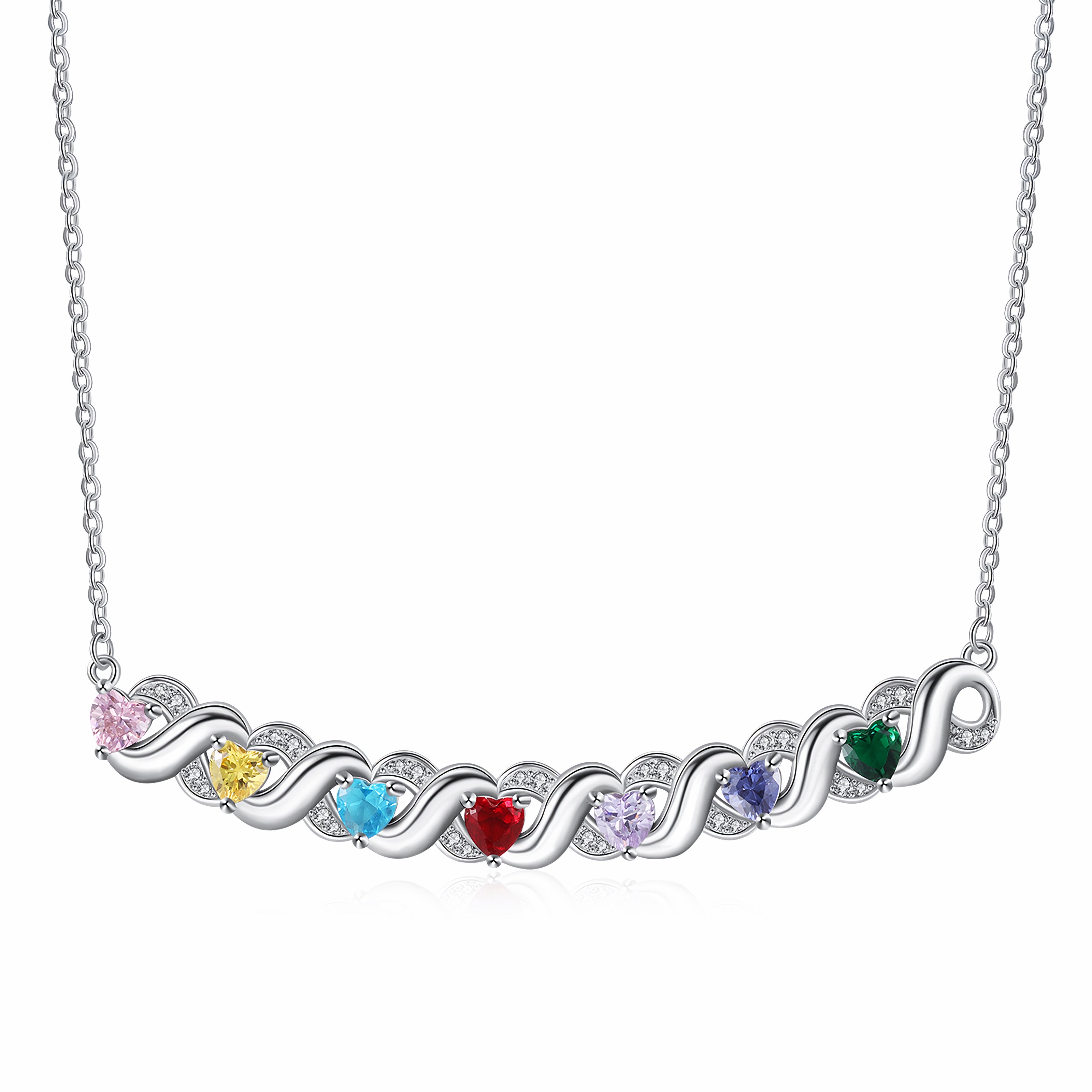 Celebrate the people who mean the most with our Horizontal Birthstone Necklace. Designed in elegant silver, this necklace can be customized with 2-7 engraved names, each paired with a sparkling birthstone. The sleek horizontal design adds a modern touch, making it a perfect keepsake for mothers, grandmothers, or anyone who cherishes family.