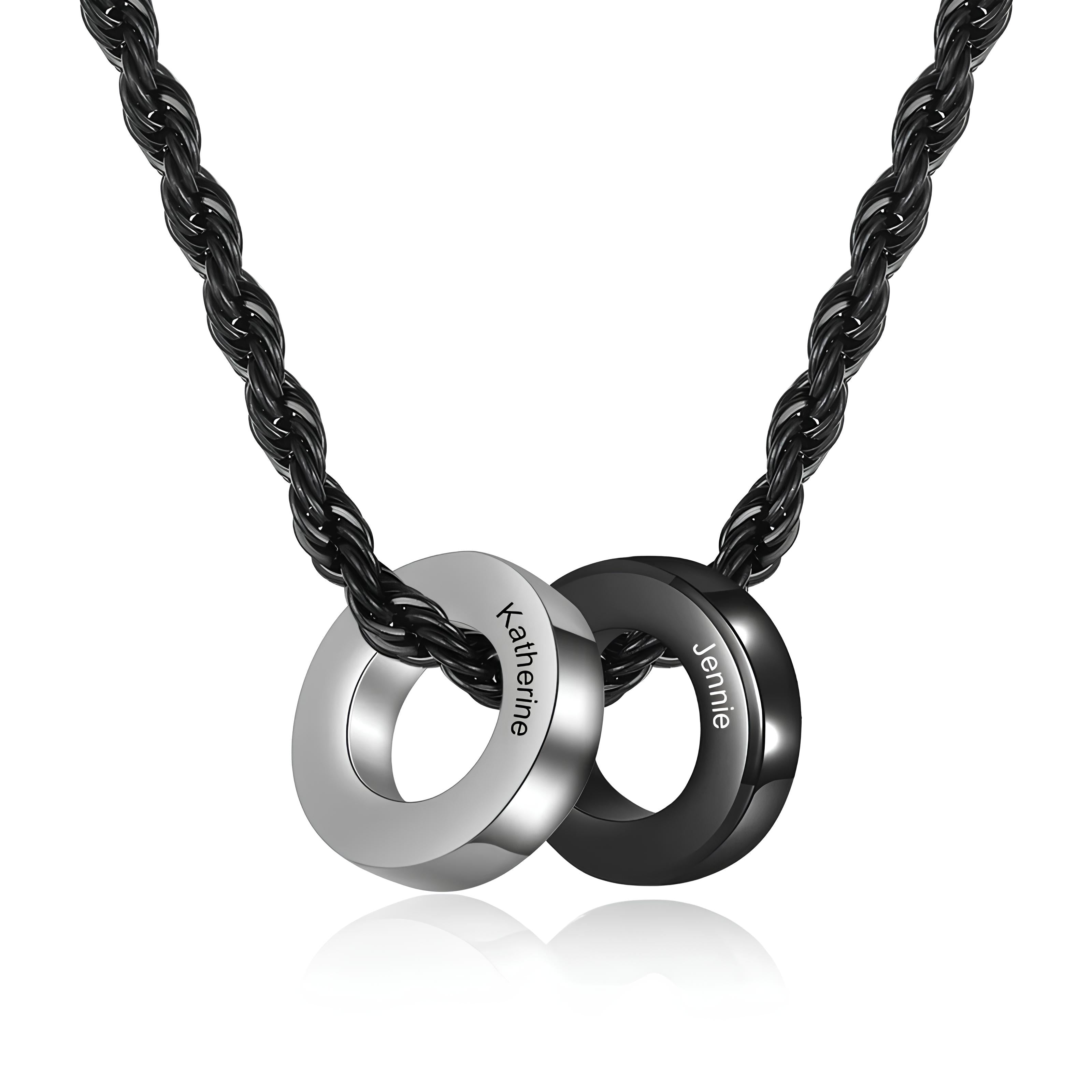 Turn moments into memories with our Men's Custom Charm Necklace. This thoughtfully designed piece is perfect for celebrating the people, places, or words that matter most to you. With 1-8 customizable charms, each engraved with a name or special message, it’s more than just a necklace—it’s a story you carry with you. Choose from silver, gold, rose gold, or black charms, paired with a sleek 24-inch black rope chain that’s comfortable and stylish.
