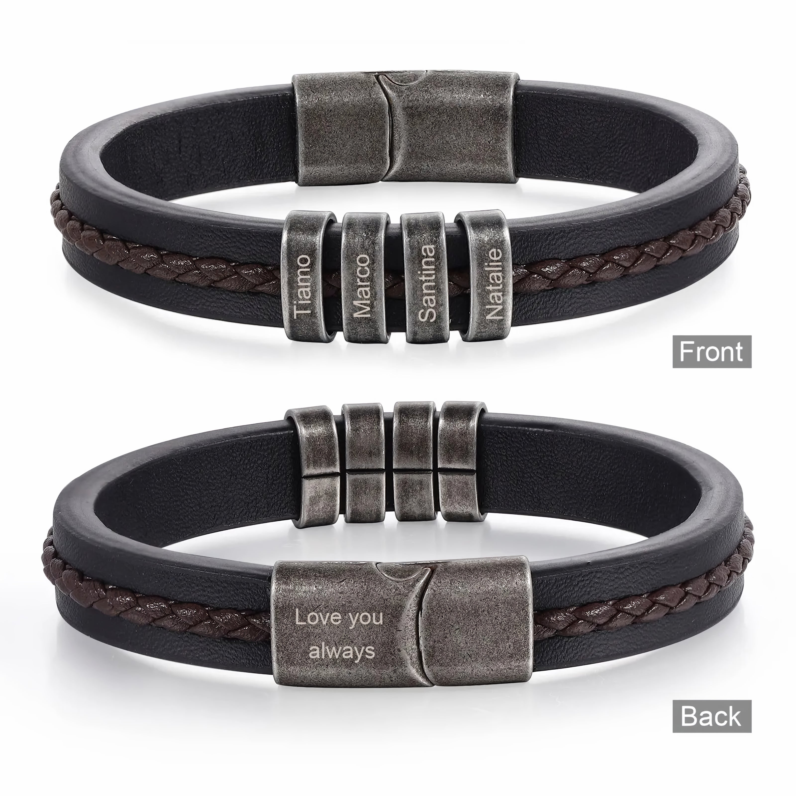 Give him something truly personal with our Vintage Leather Name Bracelet for Men. This rugged black leather bracelet features a timeless vintage finish—and what makes it even more special is the option to engrave up to 5 names and add your own photo. Whether it’s for dad, your husband, or your boyfriend, this is more than a gift—it’s a piece of his story.